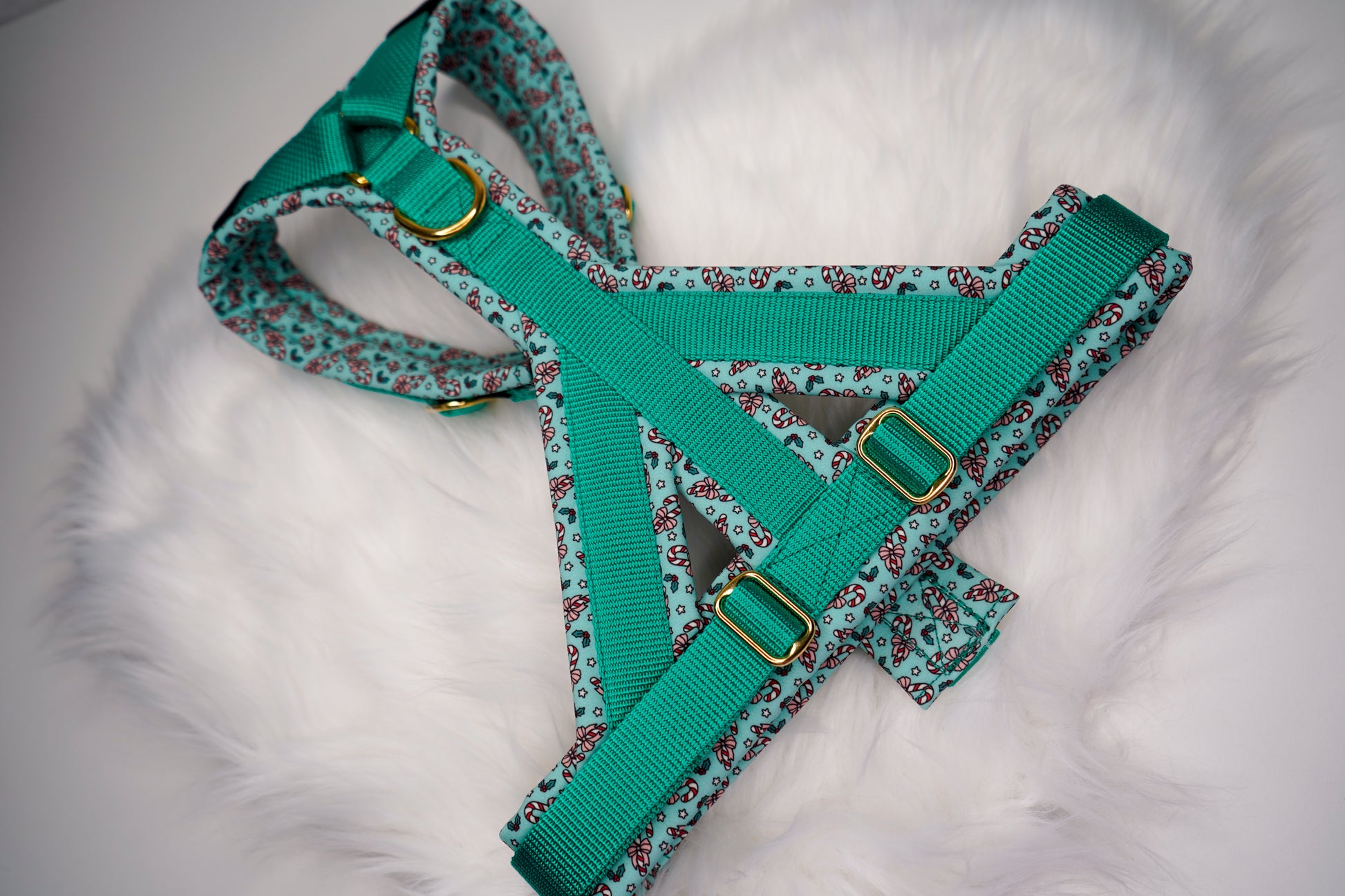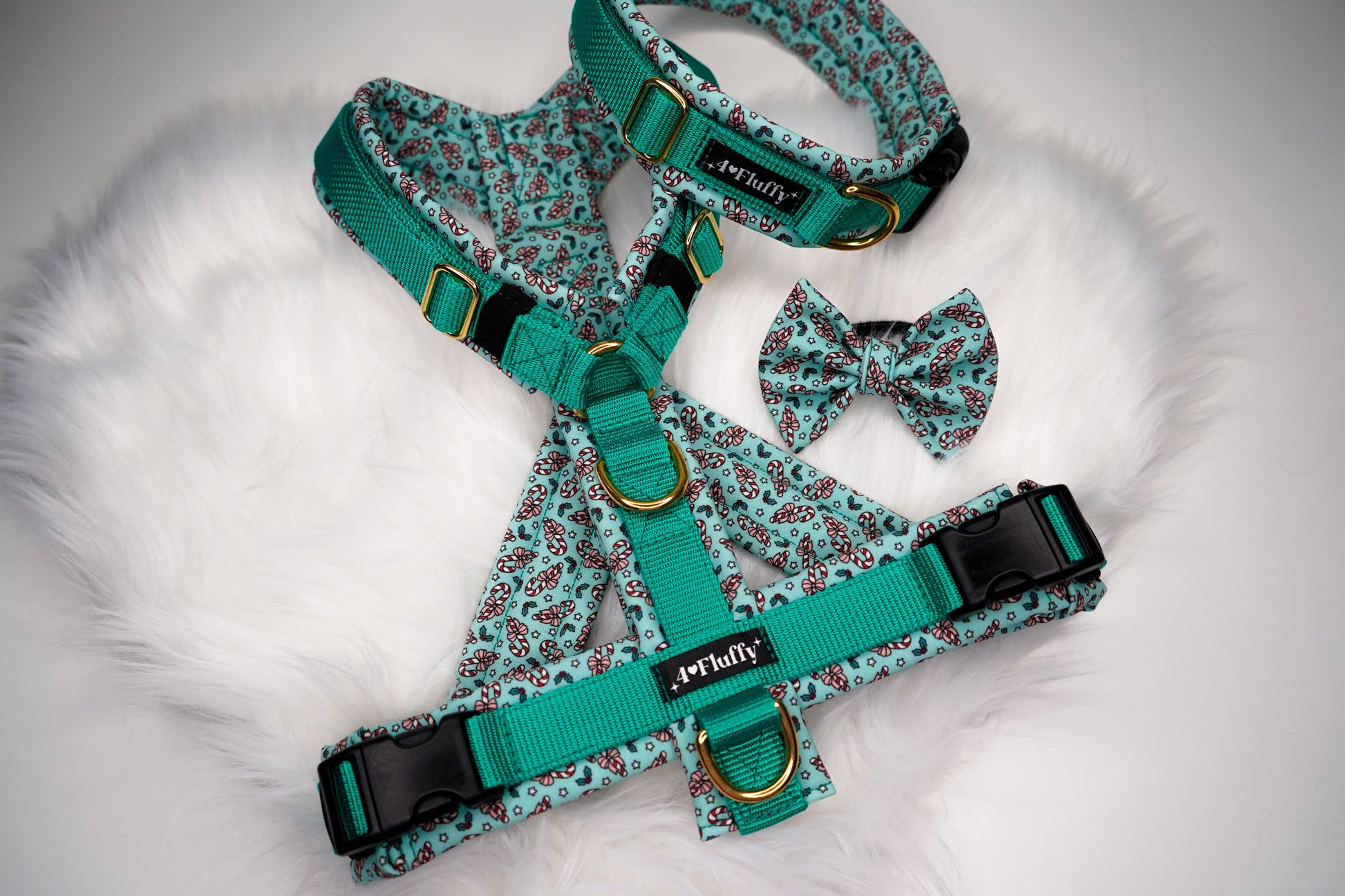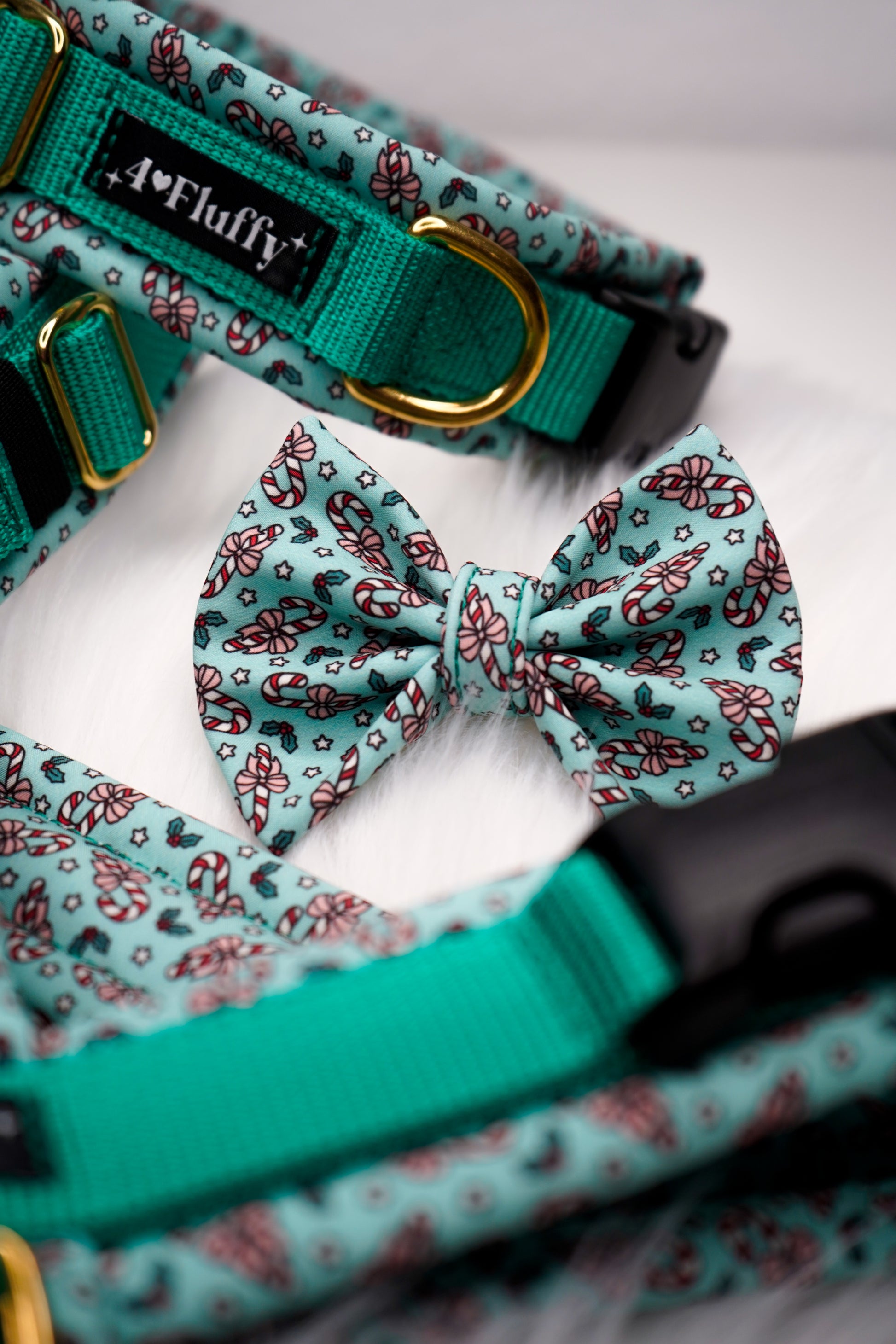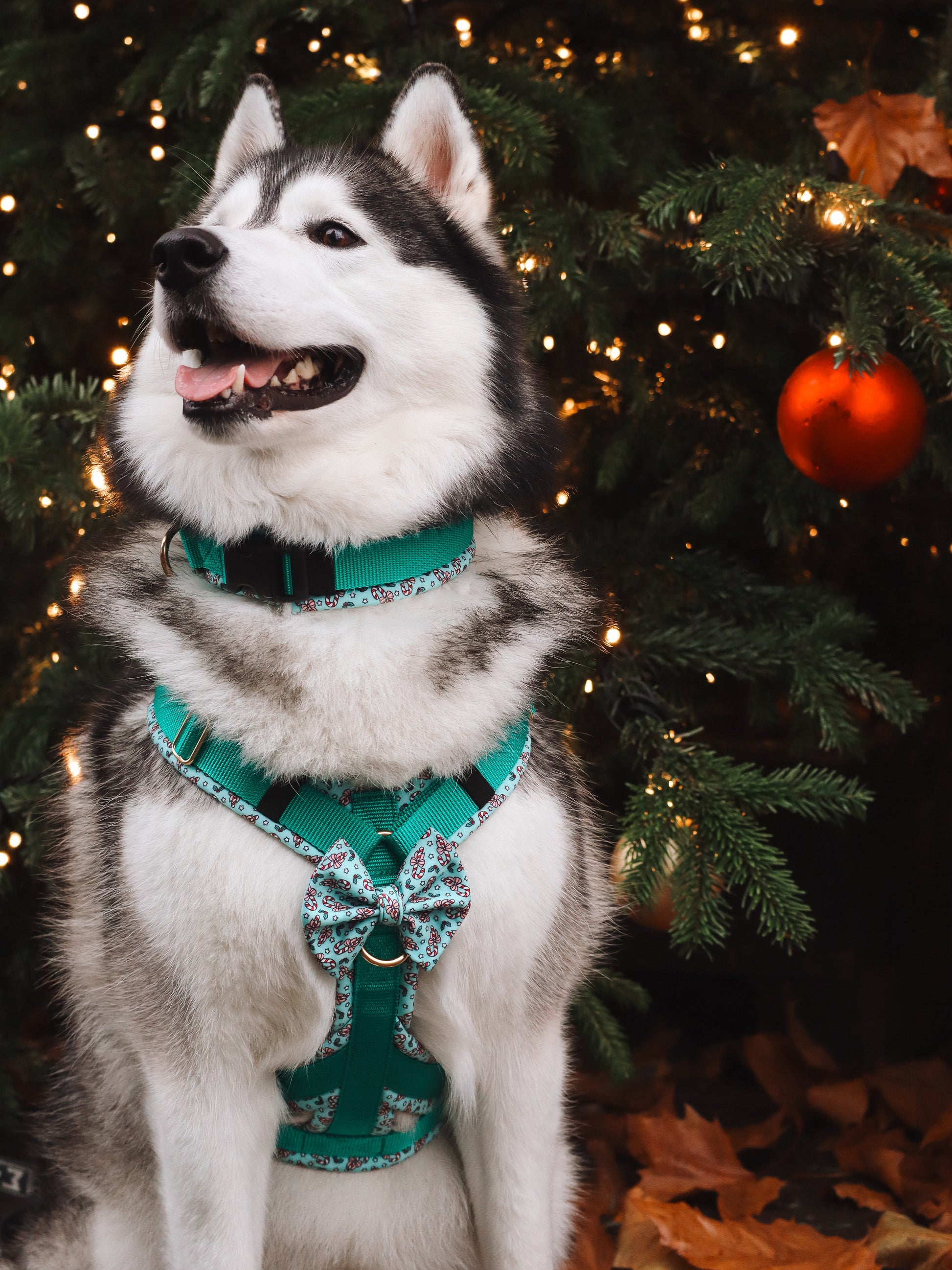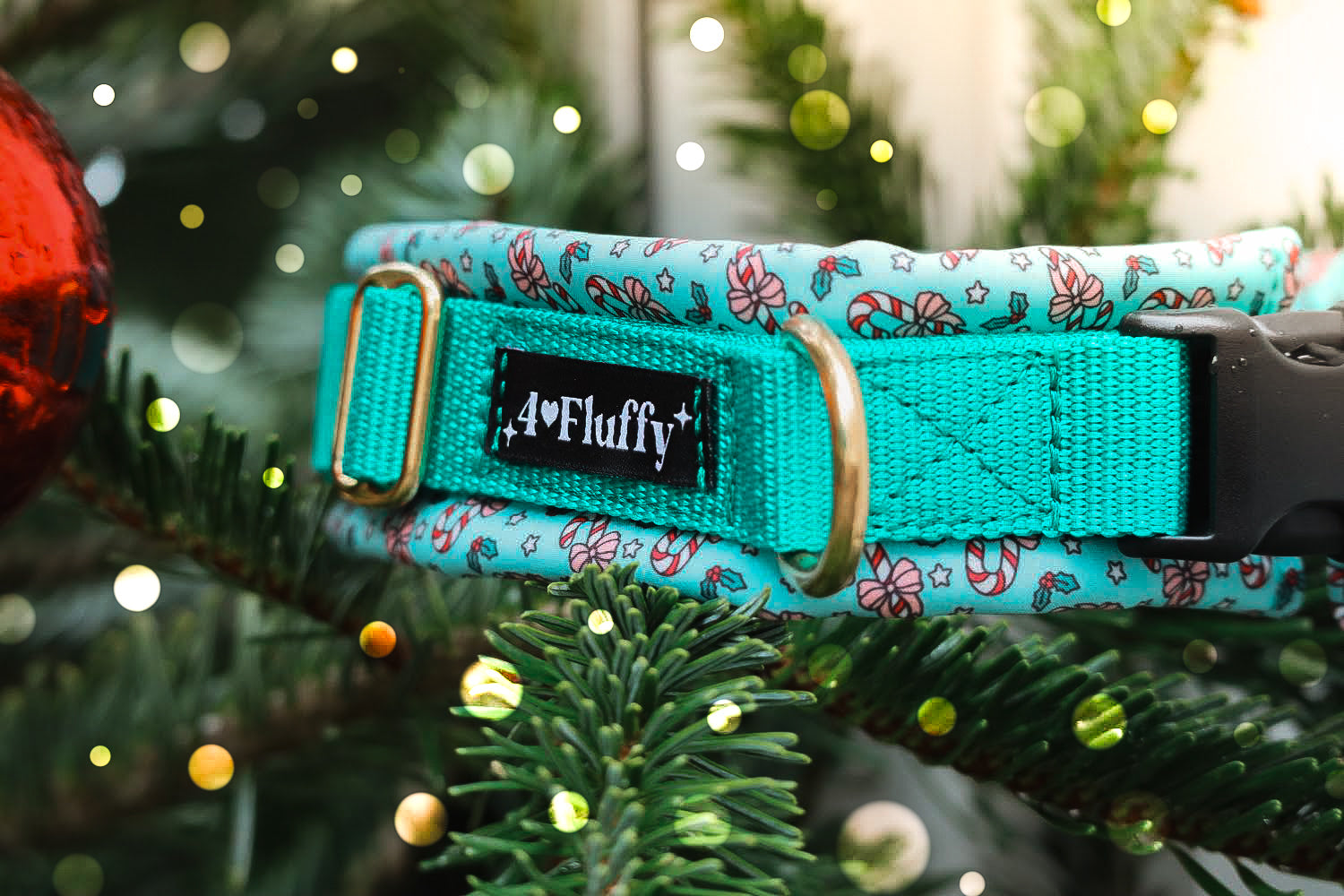 Unsere festlichen Candy-Christmas-Halsbänder gibt es in zwei Varianten – beide weich gepolstert, stufenlos verstellbar und perfekt für winterliche Spaziergänge.